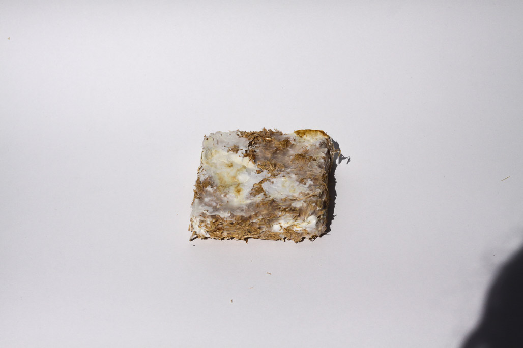 Notes: The smallest particle size of straw tests we made, this sraw was chopped and then ground with a coffee grinder into a fine powder/fibers.