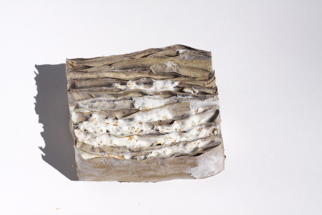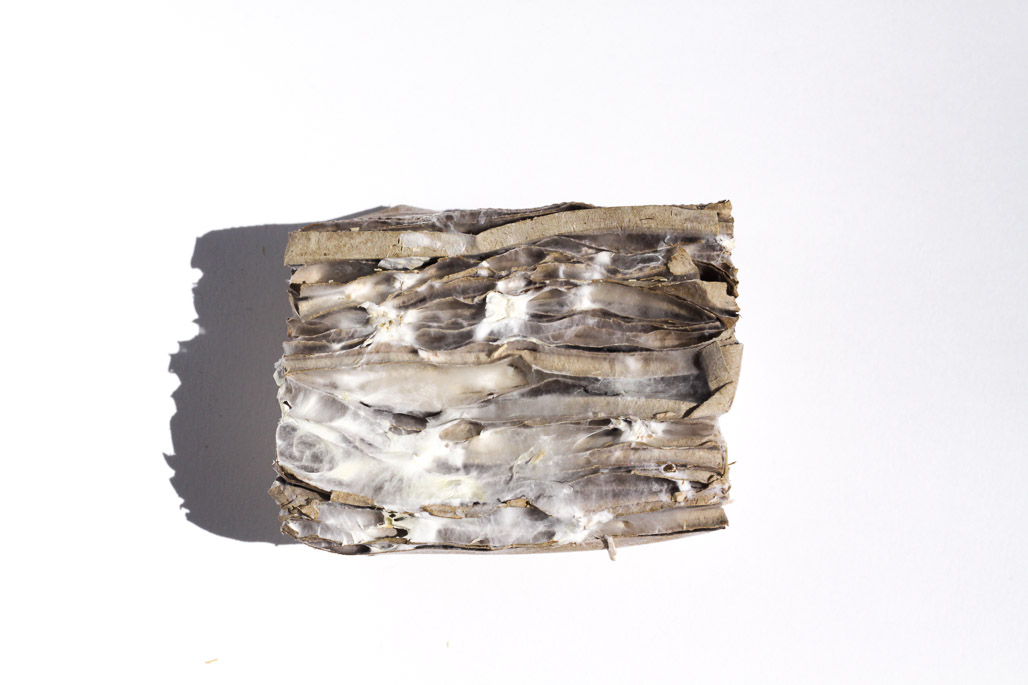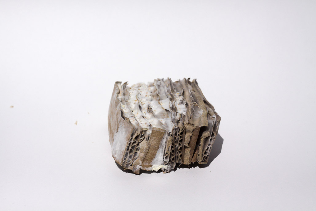 Notes: One of my most interesting tests, when grown on carboard mycelium inherits the rigidity and stucture of the cardboard.